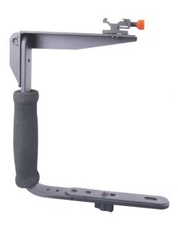 This is a light weight, compact and durable quick flip flash-rotating bracket constructed of sturdy aluminum and ergonomically designed for comfort, speed and durability. The flash bracket fits all shoe-mount flashes and can be used with both digital & 35mm SLR cameras. A pivoting flash arm keeps the flash centered above the lens for both horizontal and vertical compositions to eliminate "Red Eye" for professional looking results. A comfortable foam grip allow for comfortable shooting or carrying. The flash bracket also offers a tripod mountable base. The bracket has a height of 9" (23cm)