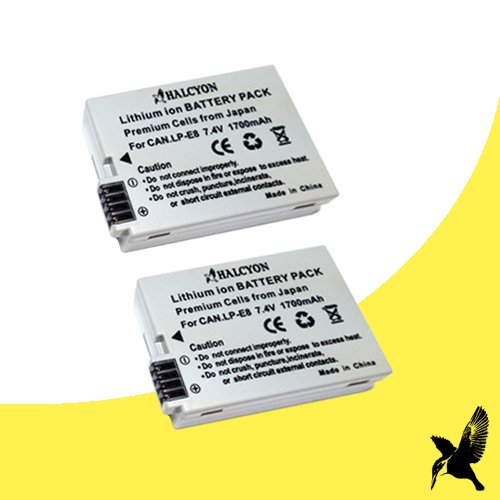 Two Halcyon 1700 mAh Lithium-Ion Extended Replacement Batteries for Canon LP-E8 and Canon EOS Rebel T2i T3i Reviews